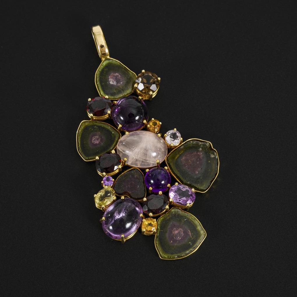 You are here:   Home Categories Jewelry Großer Anhänger mit Turmalinen und verschiedenen Steinen