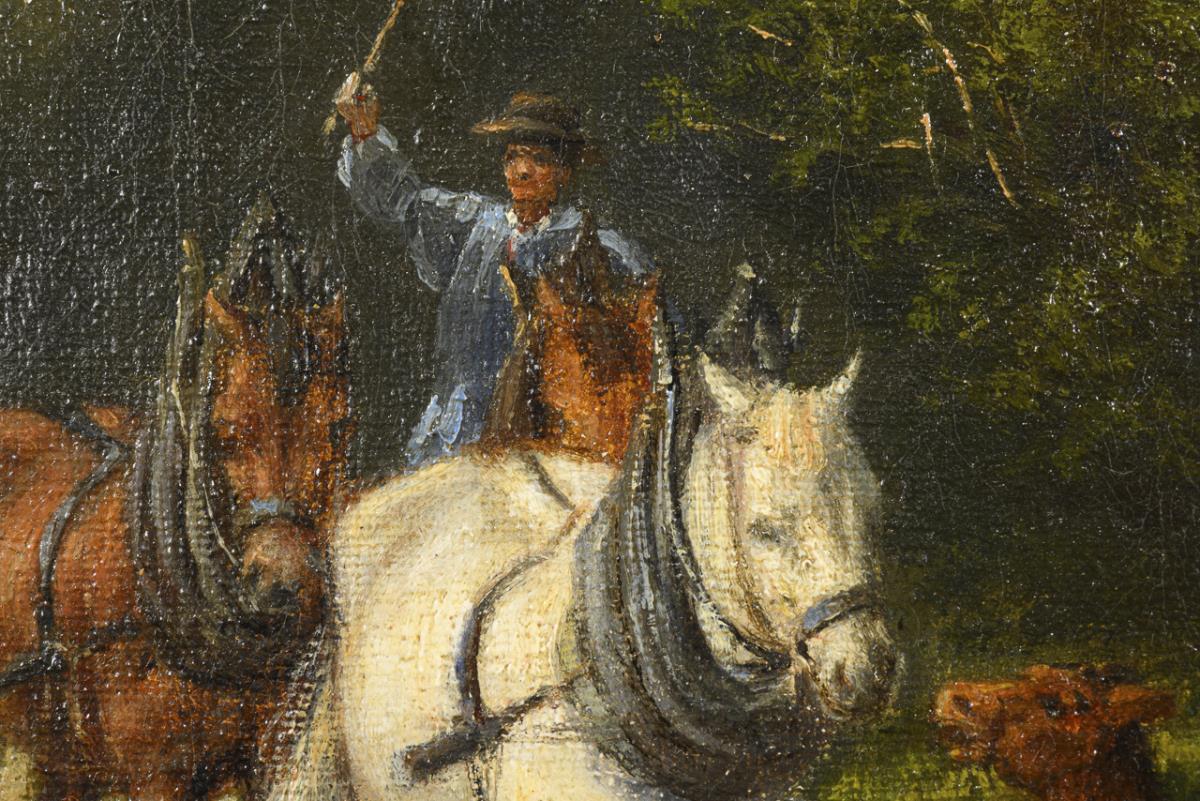 Landscape with a team of horses in a magnificent frame