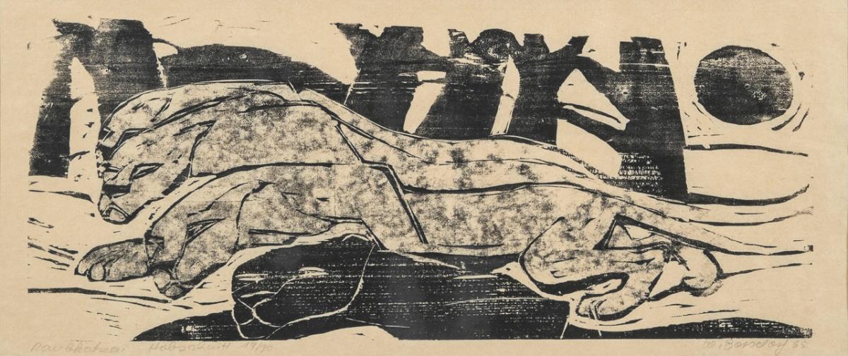Woodcut. Pencil signature lower right. 19/30.