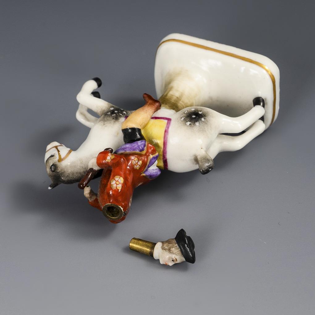 Rider sitting on a leaping white horse, worked as a miniature flacon, the head as a stopper. 1 horse's ear minimally bumped.