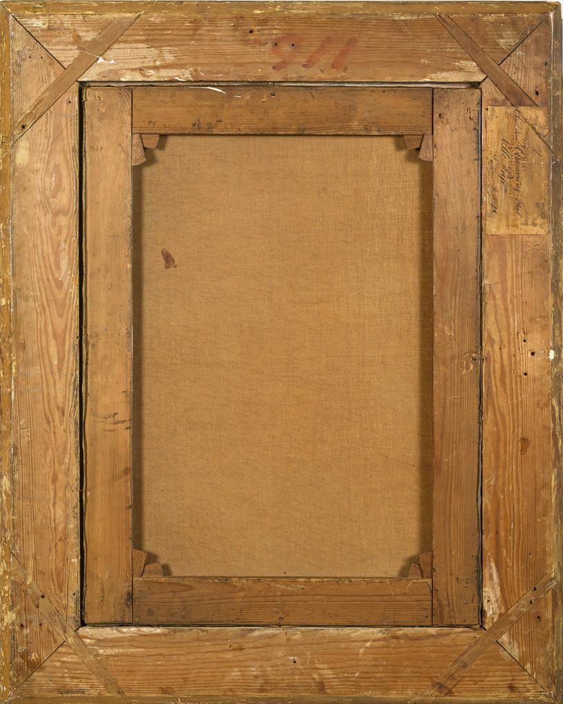 59 x 81 cm. Framed : 85 x 107 cm (gold stucco frame).