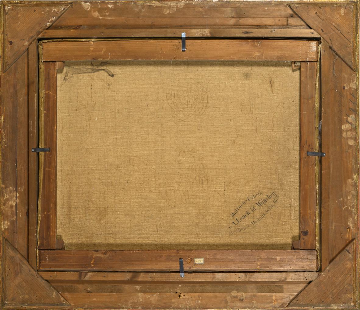 60 x 73 cm. Framed : 82 x 95 cm (gold stucco frame).
