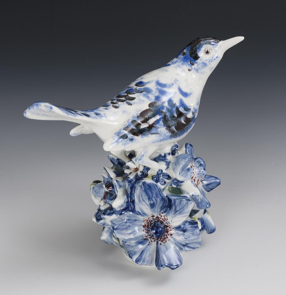 Rare blackbird with "blue and colorful flower painting". Meissen.