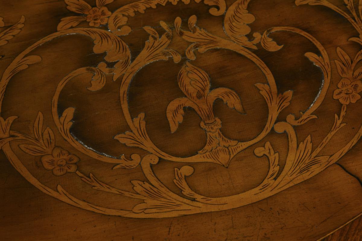 Artfully inlaid neo-Rococo chest of drawers.