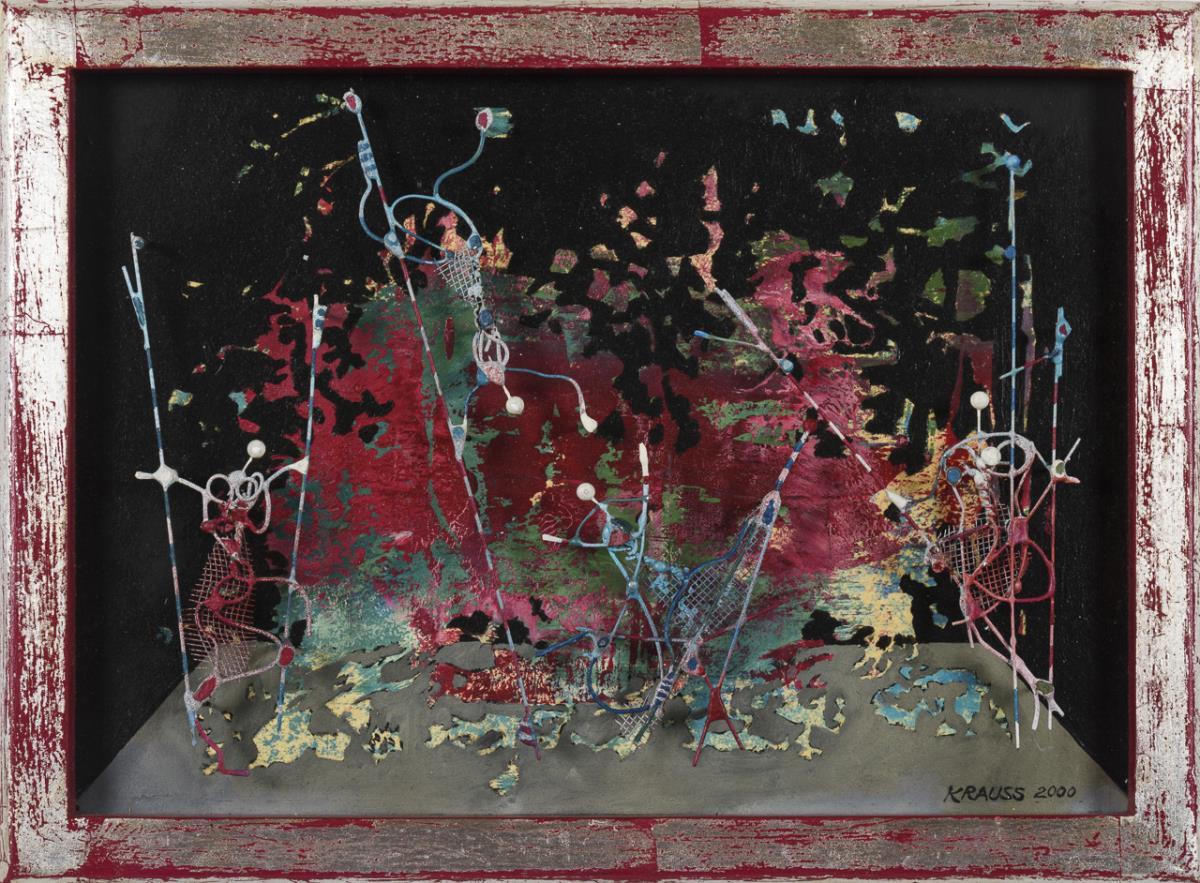 Mixed media with figurative metal applications. Signed lower right, titled on verso. Dated: 2000.