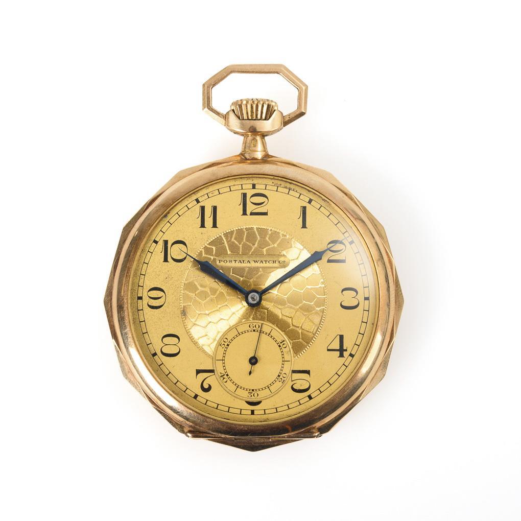 Golden Art Deco pocket watch. Postala Watch Co.