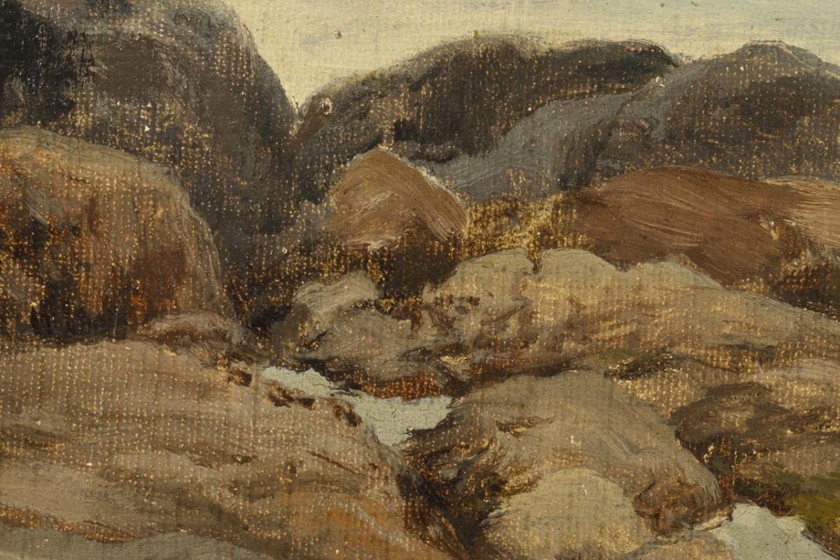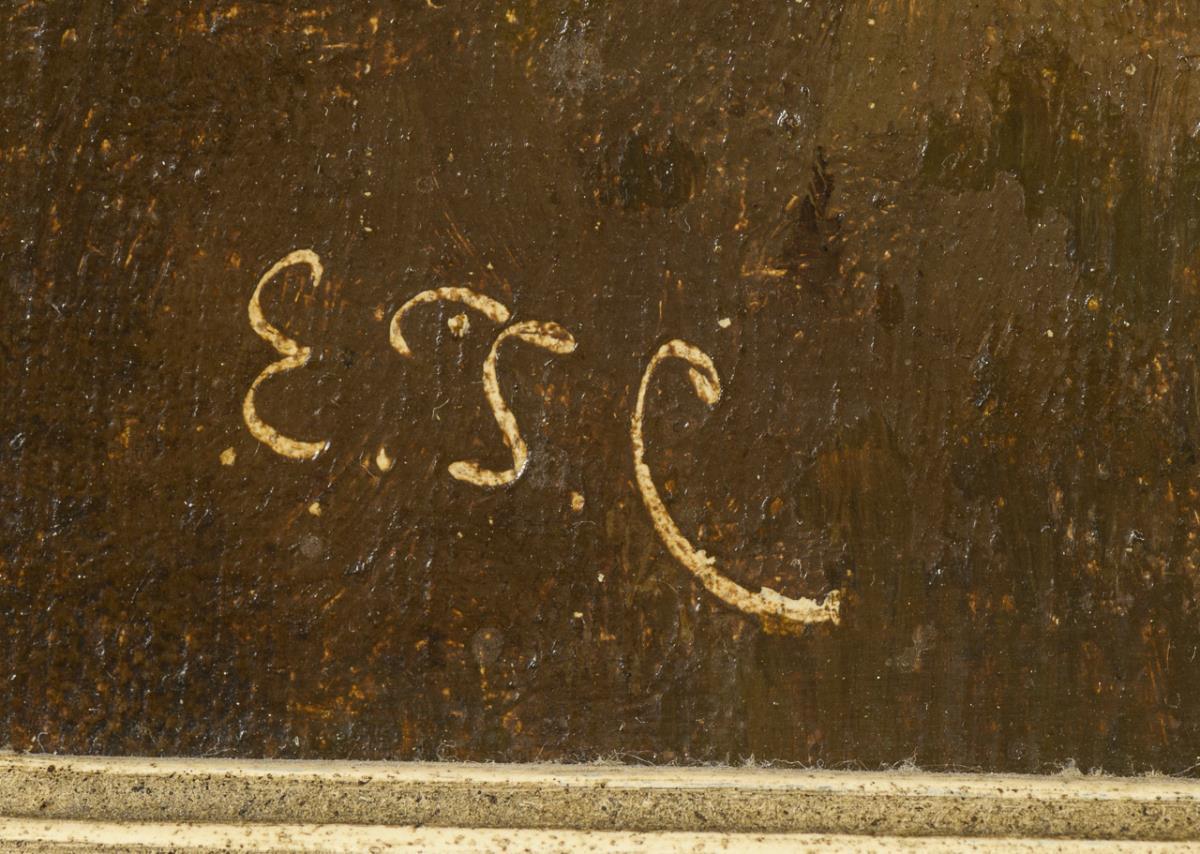 Oil/canvas/cardboard. Monogrammed lower left.