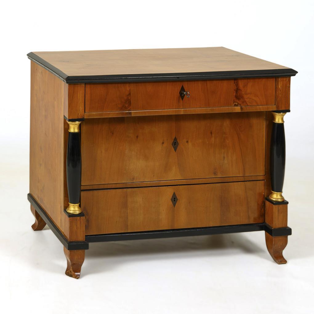 Cherry, veneered, partly ebonized. 82 x 99 x 58 cm.