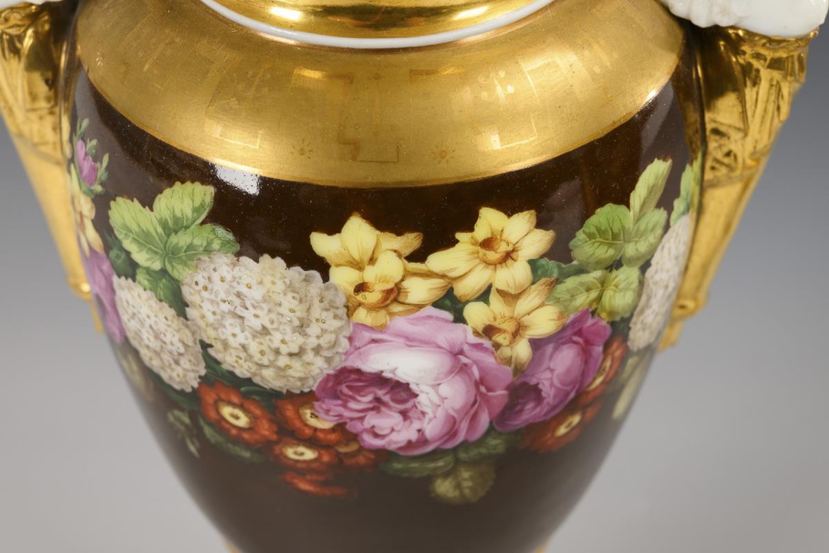 Pair of amphora vases with floral painting.