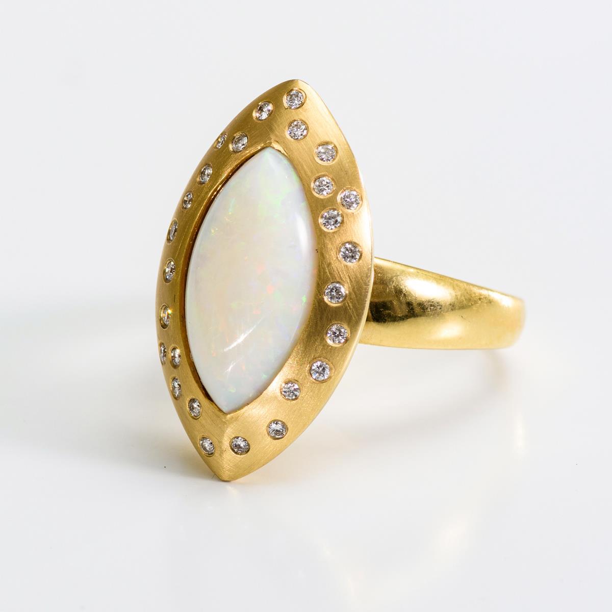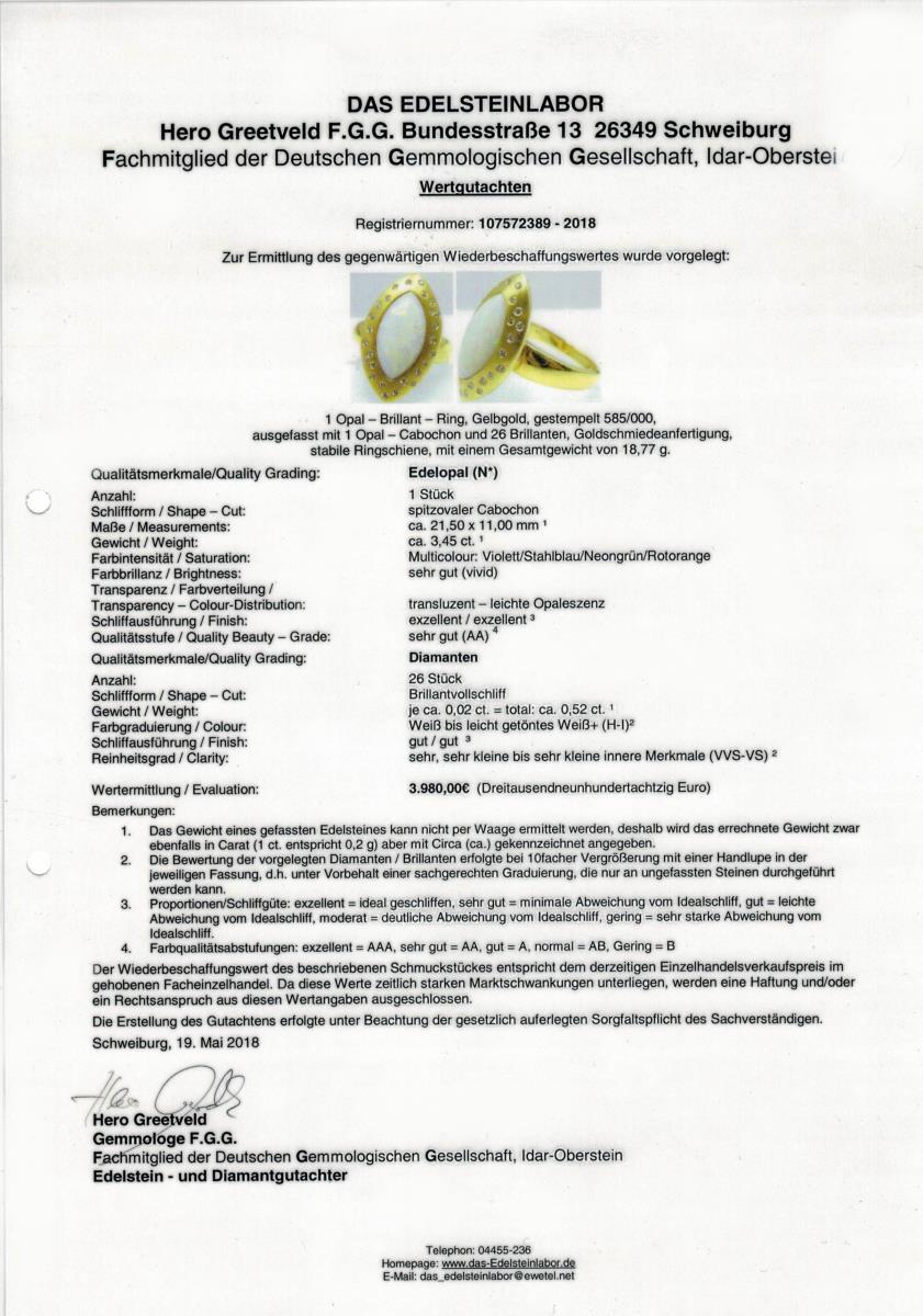 Opal ca. 3,4 ct. Brillanten zus. ca. 0,52 ct/H-I/vvs-vs. Ringgröße 72.