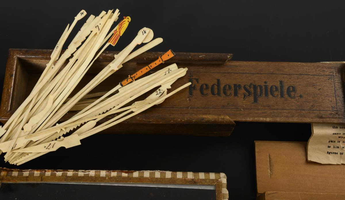 Small collection of different versions of feather, trembling and wobbling games. Each in a case, with instructions (some copies). Signs of age, completeness not tested.