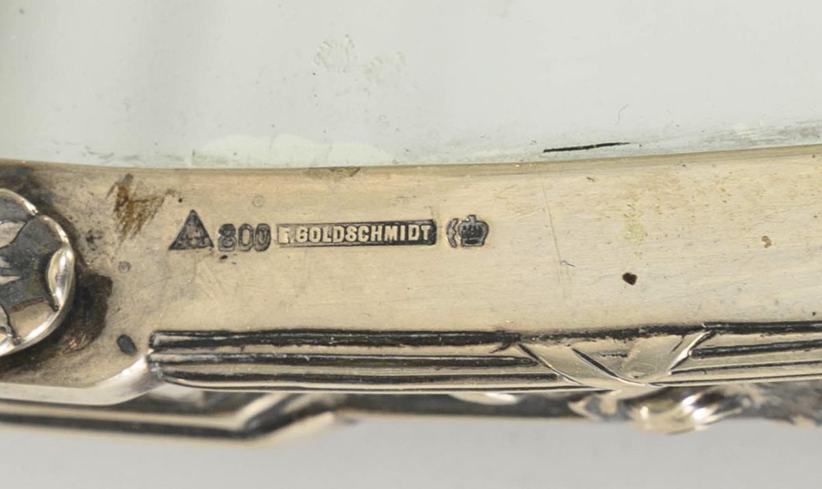 Both pieces hallmarked with company mark triangle/800/crescent/crown, with jeweler's stamp E. Goldschmidt. Circa 1900.