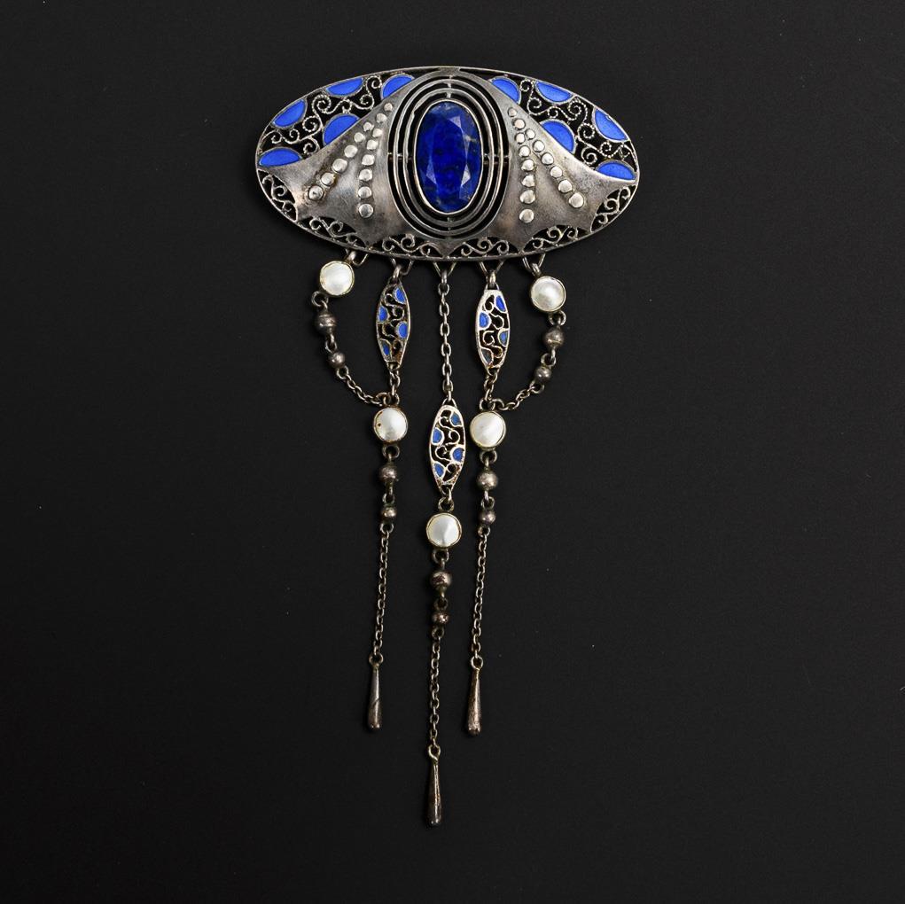 Rare Art Nouveau brooch with lapis lazuli and enamel.