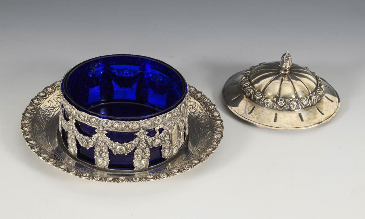 Silver, glass. H 9 cm, Ø 15 cm. 243 g (without insert).