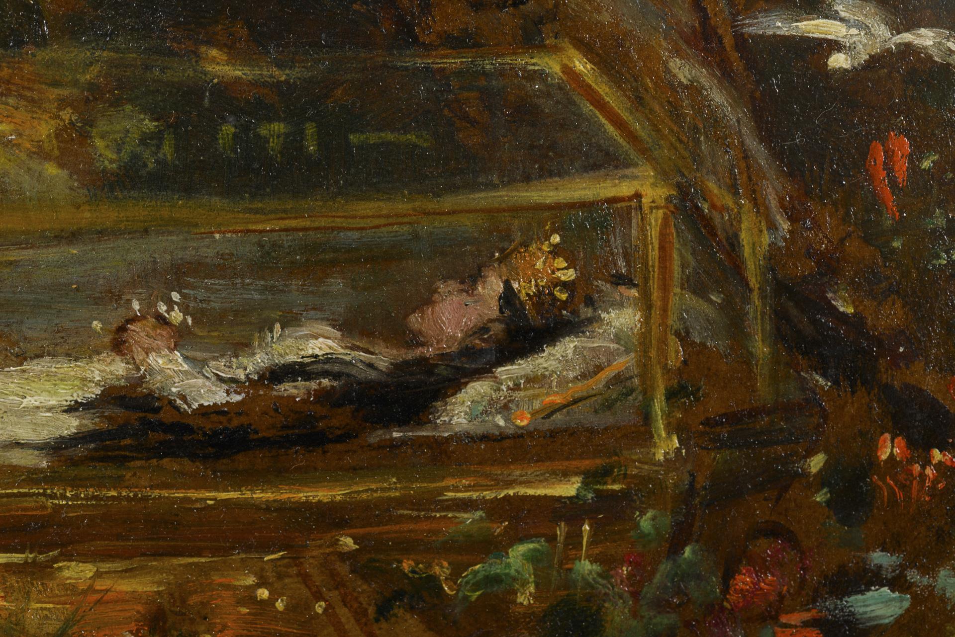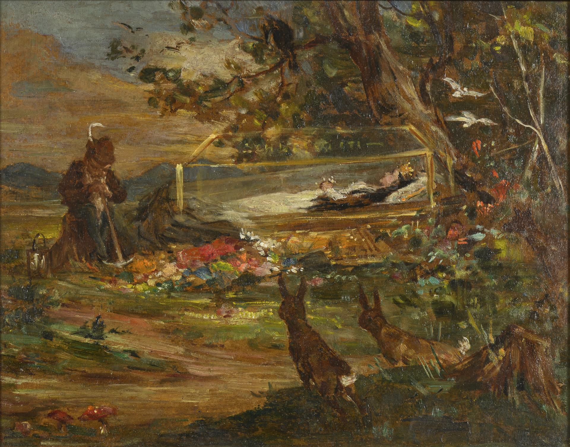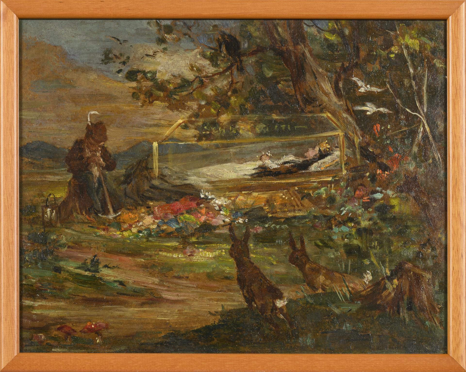 Schlitt, genre painter, watercolorist and illustrator, studied at the academy in Munich and exhibited at almost all important art exhibitions in Munich from 1879-1917. He became famous for his fairy tale illustrations and especially for his fantasy paintings of forest dwarves and gnomes.