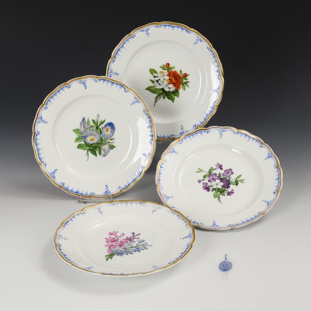 4 Biedermeier plates with flower painting. KPM Berlin.