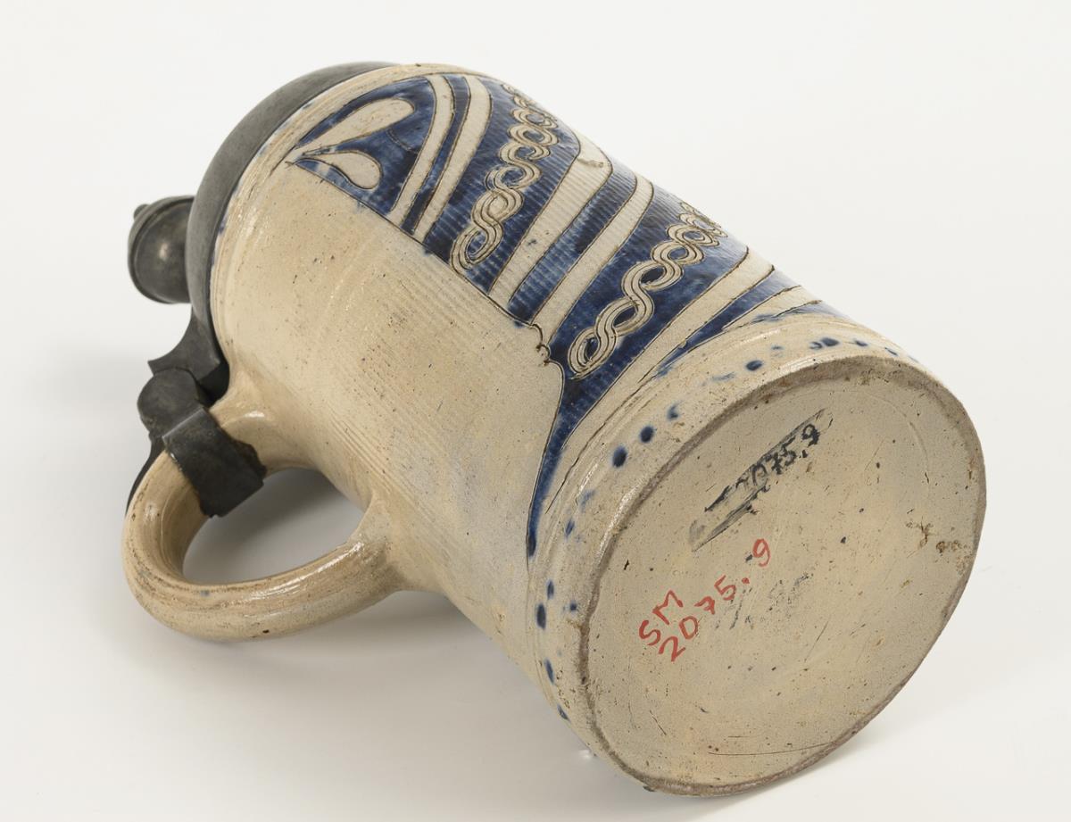Westerwald roller jug with striped and plaited band pattern.