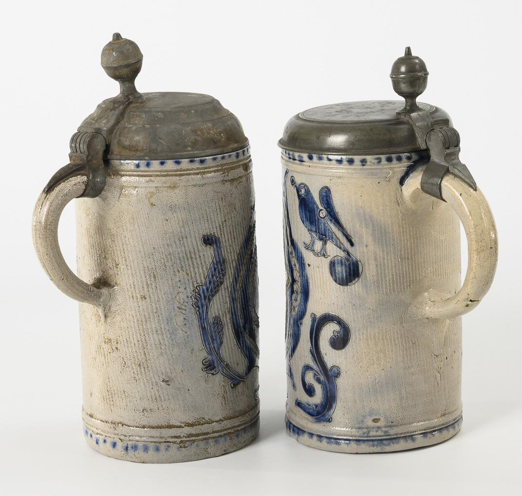 2 Westerwald roller jugs with cartouche decoration.
