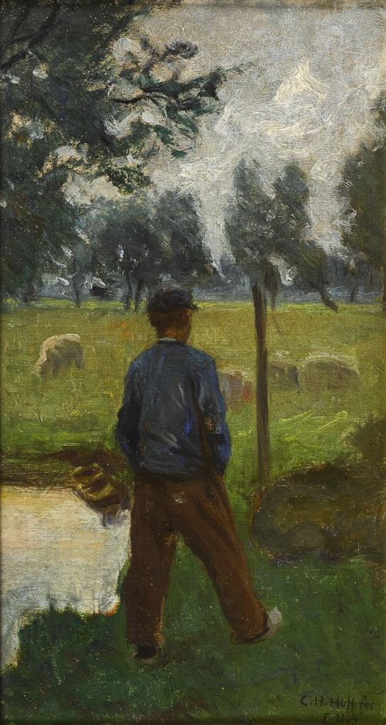 Oil/canvas/cardboard. Signed "C.H. Hoff fec." and "E. Hoff" lower right, verso probably former owner's label. Circa 1900.