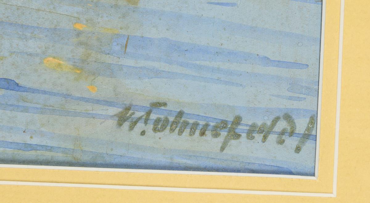 Passepartout cut-out 39 x 50 cm. Framed & behind glass : 63 x 75 cm (gold frame).
