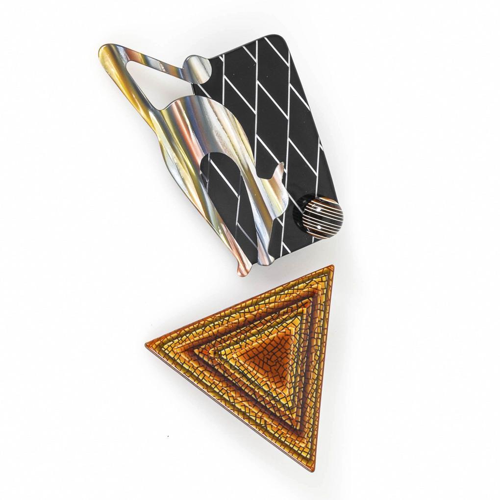 Laminated cellulose acetate. Signed LEA STEIN PARIS. Metal brochure. 5.5 x 5.5/7 x 4.5 cm. 10,8/8,4 g.