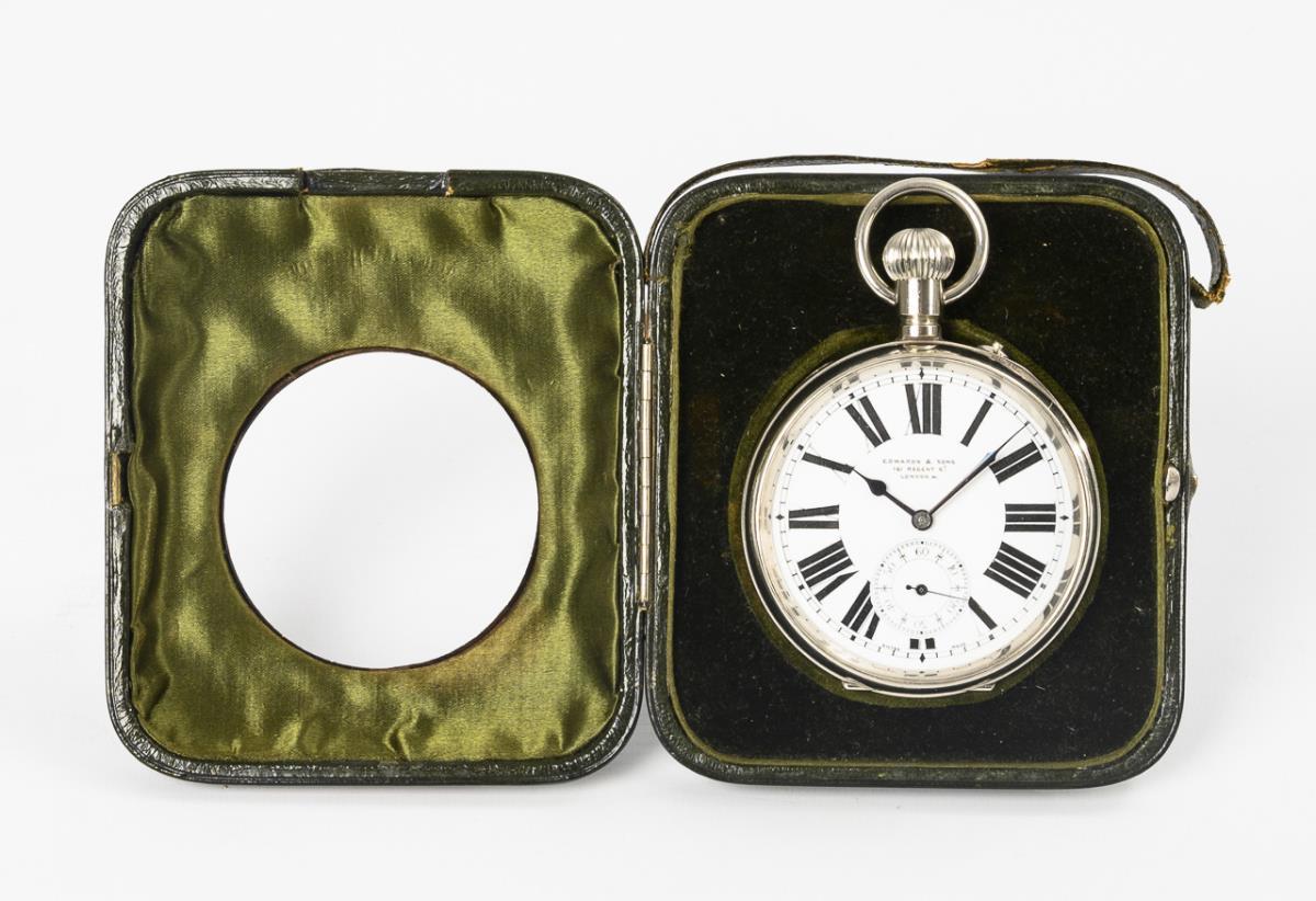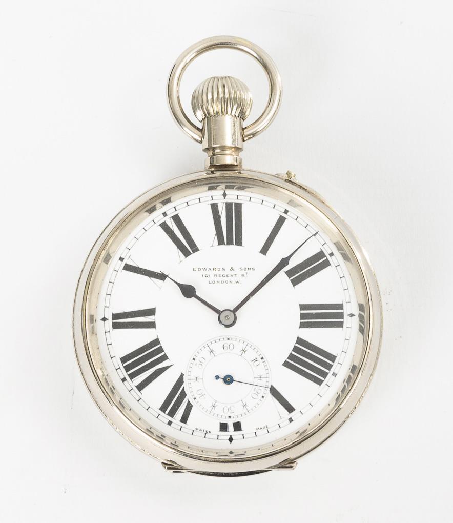 Large English pocket watch "Edwards & Sons" in silver case.