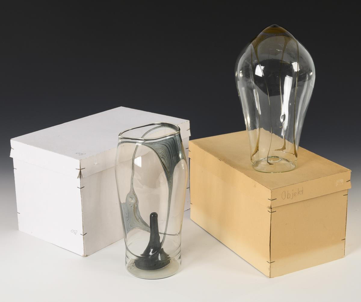 German art glassblower, glass designer and glass artist; member of the Association of Visual Artists of the GDR, freelance artist in Lauscha. Since 1977 participation in numerous national and international exhibitions. Artistic director of the International Glass Symposia in Lauscha in 1986 and 1989; "Hubert Koch was the only one of the many lampwork glassblowers in the Thuringian Forest who followed Albin Schaedel (1904 - 1999) from the design of animal figures into vessels to really break away from his model and develop a highly independent formal language, even in international comparison. His delicate glassware, in which he often juxtaposes undecorated surfaces with echoes of natural forms, has won many awards." In the original box.