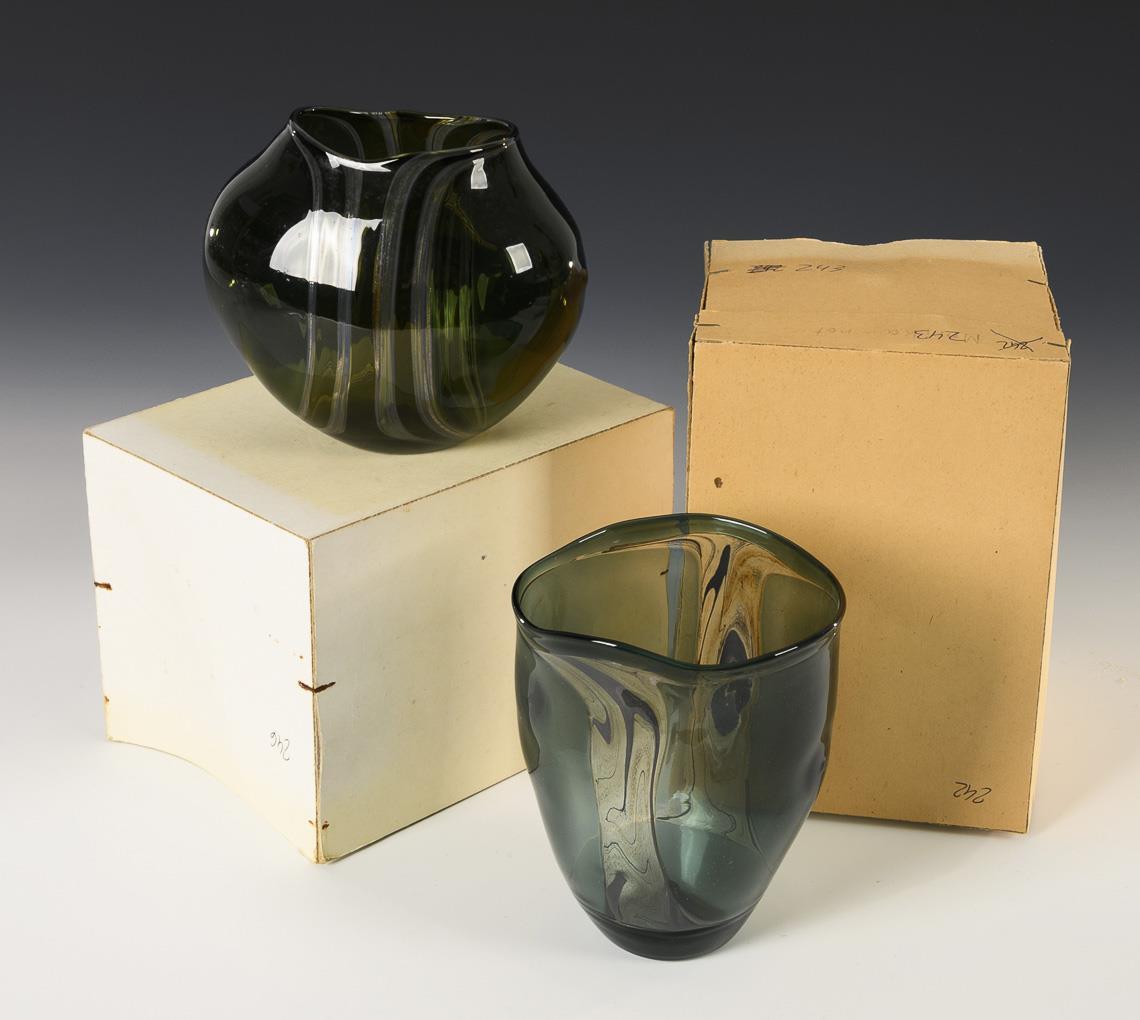 German art glassblower, glass designer and glass artist; member of the Association of Visual Artists of the GDR, freelance in Lauscha. Since 1977 participation in numerous national and international exhibitions. Artistic director of the International Glass Symposia in Lauscha in 1986 and 1989; "Hubert Koch was the only one of the many lampwork glassblowers in the Thuringian Forest who followed Albin Schaedel (1904 - 1999) from the design of animal figures into vessels to really break away from his model and develop a highly independent formal language, even in international comparison. His delicate glassware, in which he often juxtaposes undecorated surfaces with echoes of natural forms, has won numerous awards." In the original box.