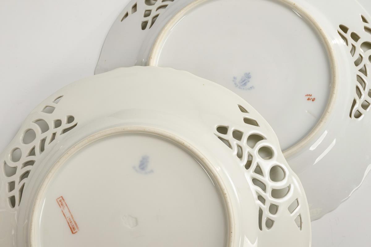 Dessert plate with partially pierced rim, each with the depiction of a peach branch or apricot branch in the mirror.