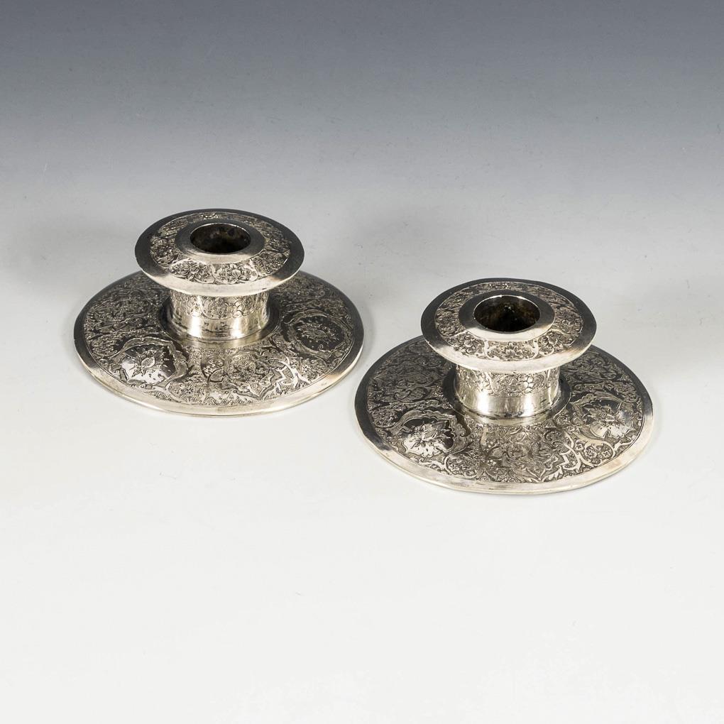2 Persian silver candlesticks.