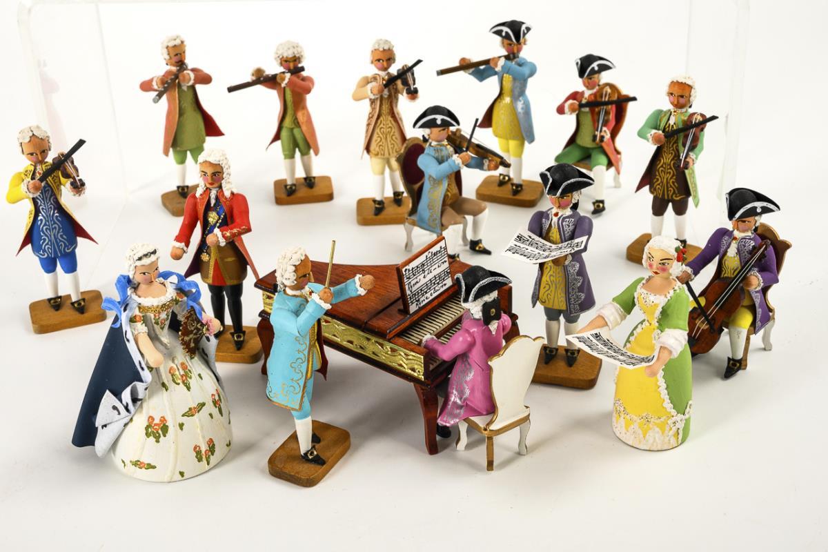 24 figurines: Frederick Augustus the Strong and Countess Cosel, plus 22 "Baroque musicians". Walter Werner arts and crafts, Seiffen.