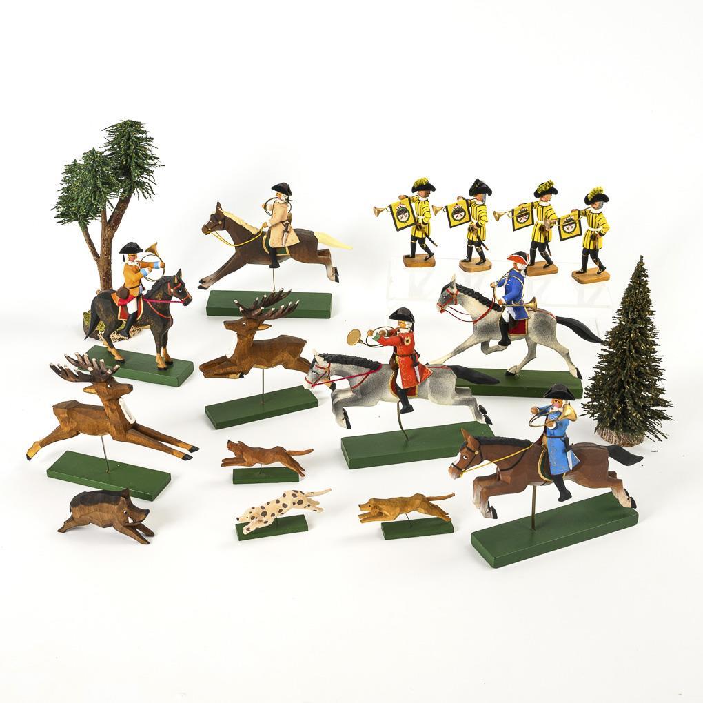 Convolute of hunting figurines, Erzgebirge. Werner figurines.