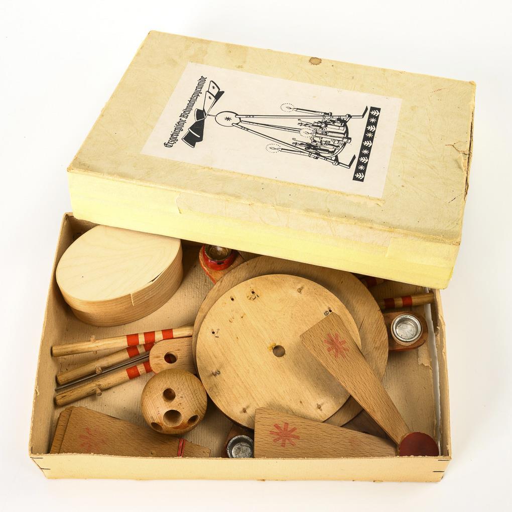 Small, dismountable Christmas pyramid by Günter Flath, Seiffen. H approx. 30.5 cm. In original cardboard box. / Smoking figure as an old man at the tiled stove, with pipe and toys. H 18 cm. / Santa Claus with Christ Child. H 8 cm. / Boy on a sleigh. H 6 cm. Small defects.