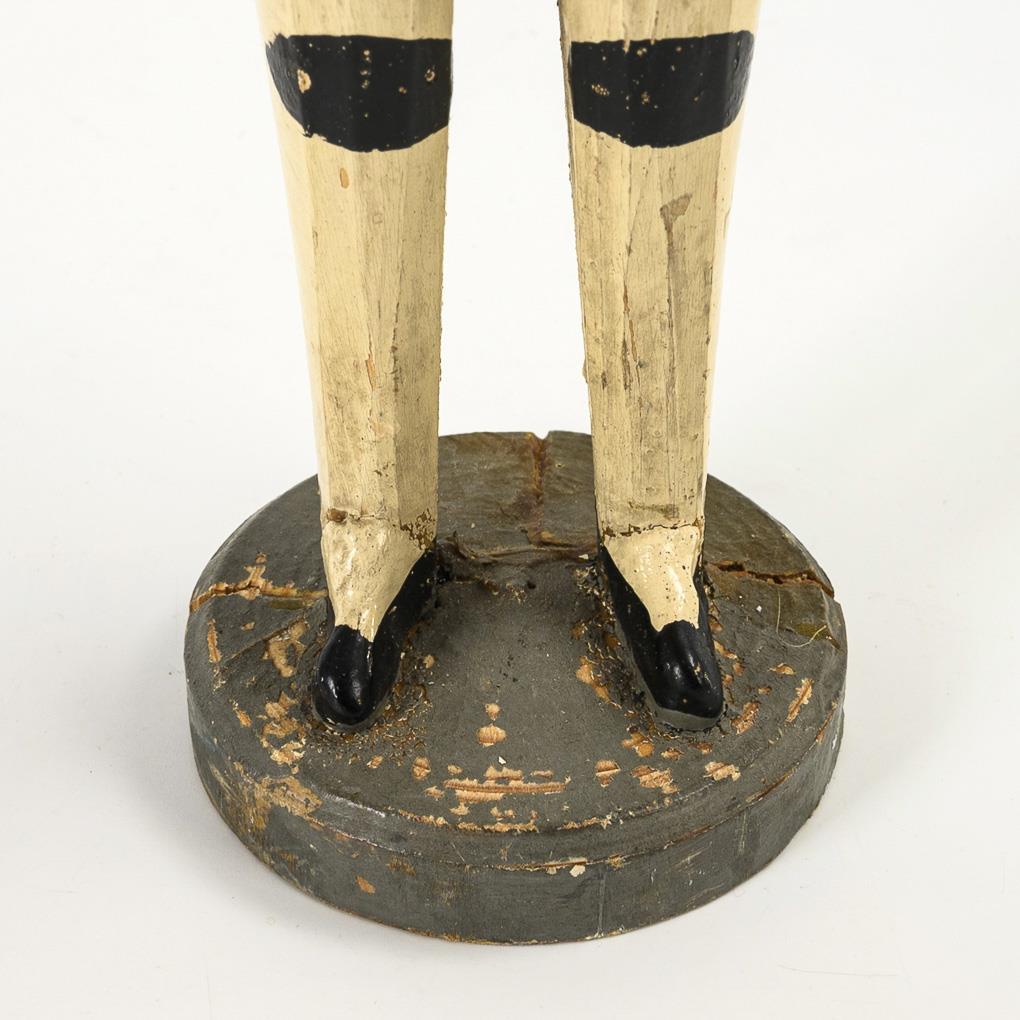 Candelabra angel with bread dough arms, crown and green wings. Arms possibly added? H 31 cm. / Candlestick miner with glued-on pit leather (so-called "ass leather") made of oilcloth. Dry cracks and defects. H 28 cm.