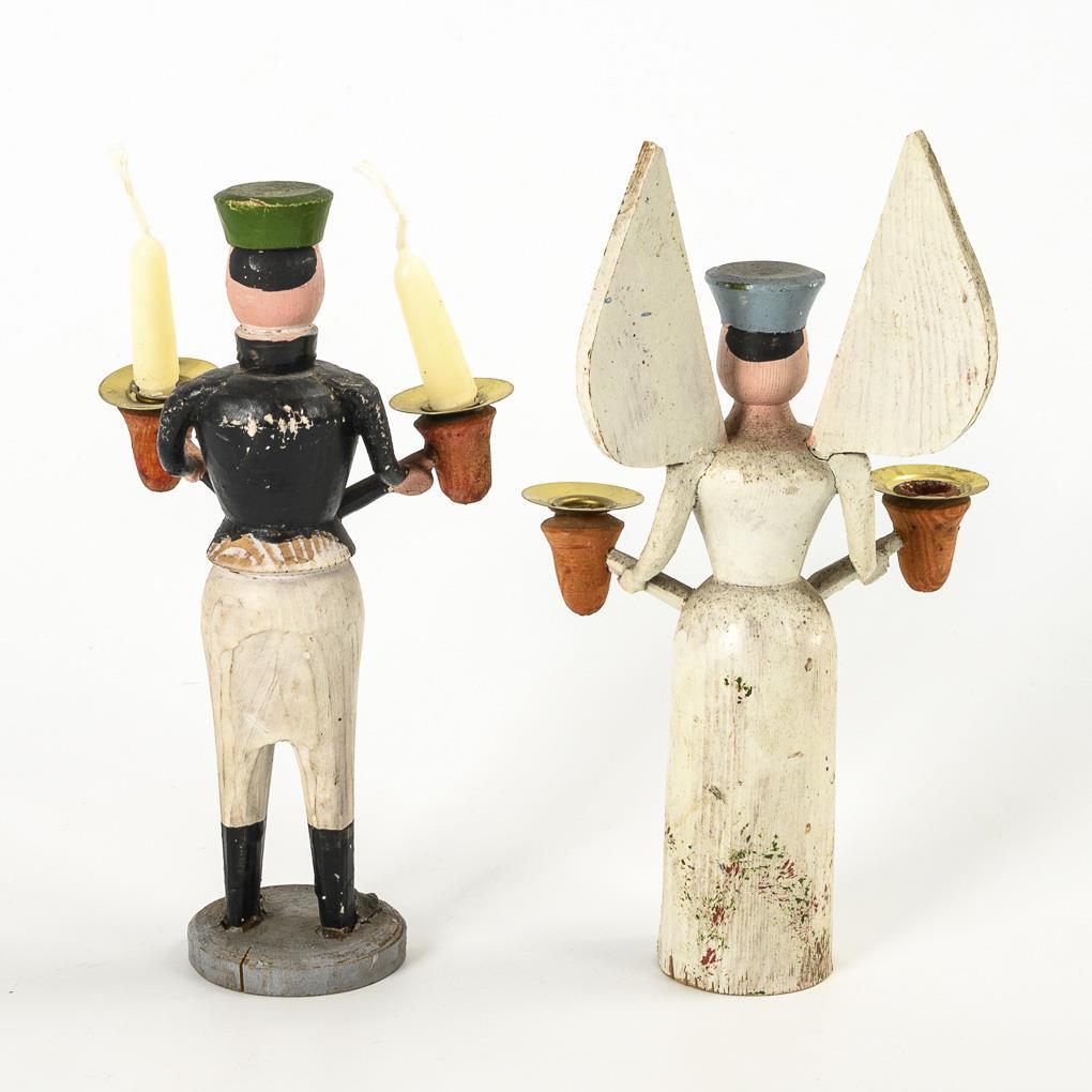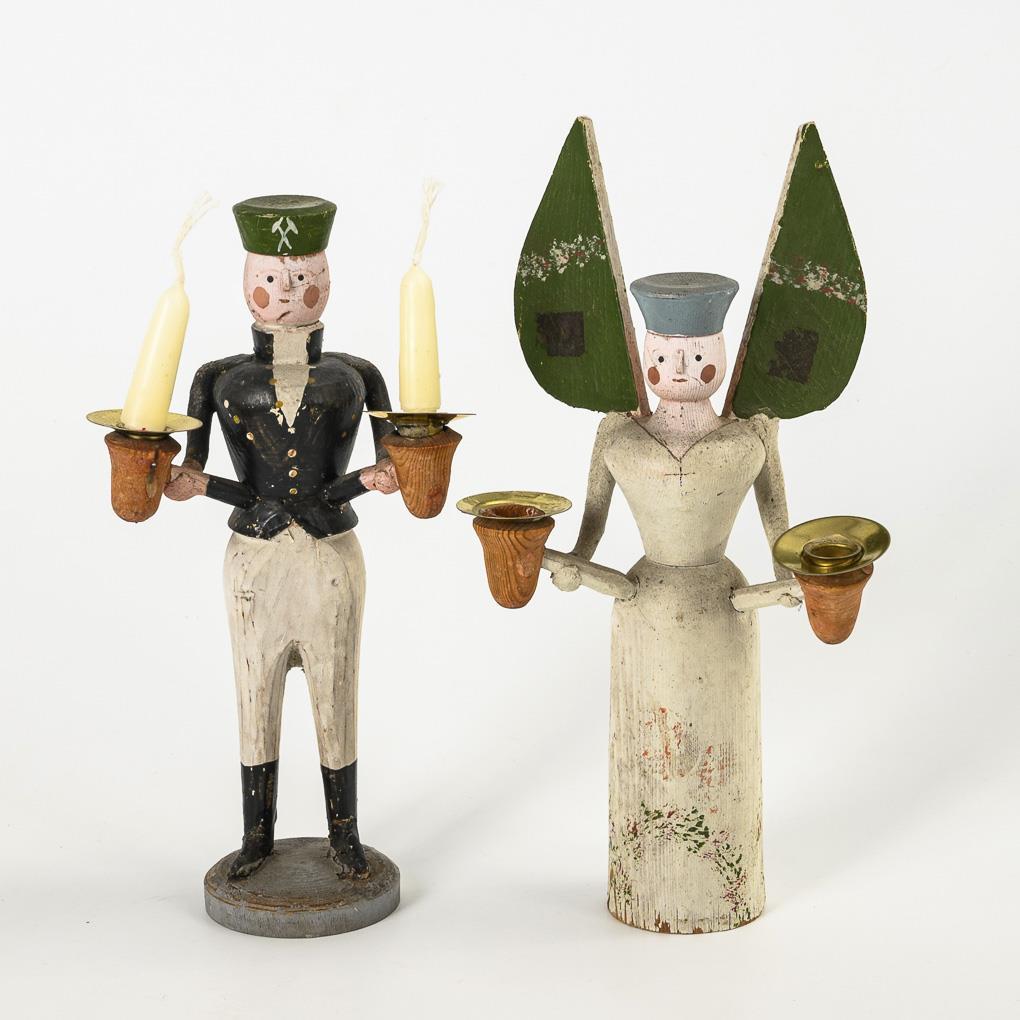 Pair of early candlestick figures with bread dough arms, Erzgebirge.