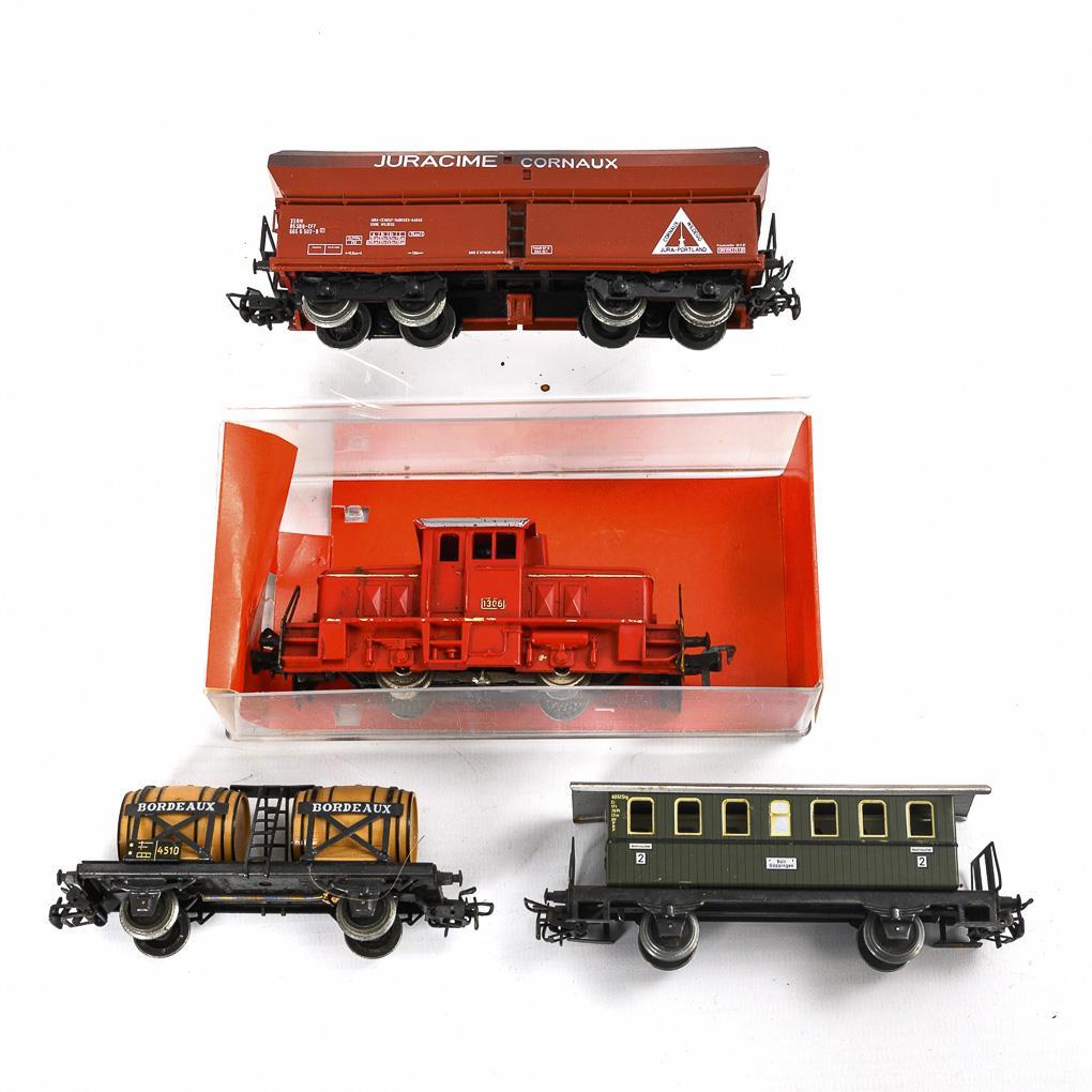 8 locomotives and 3 wagons in various designs. Of these, 3 in original packaging. For electric operation, function not tested.