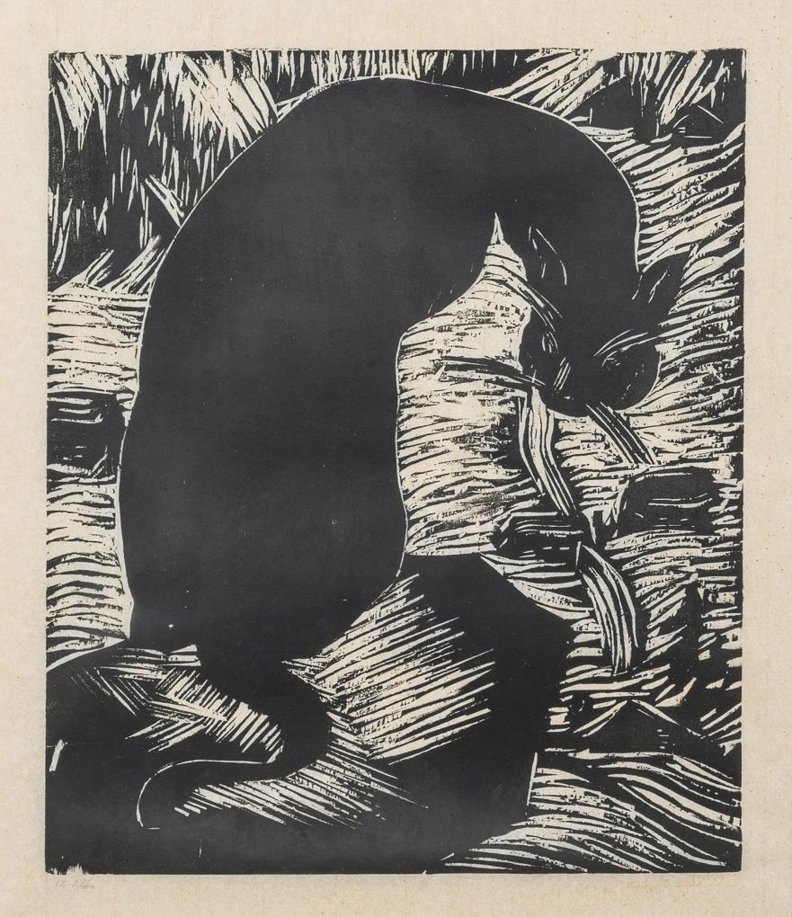 Woodcut. Signed once lower right, heavily faded. 12-2/60.