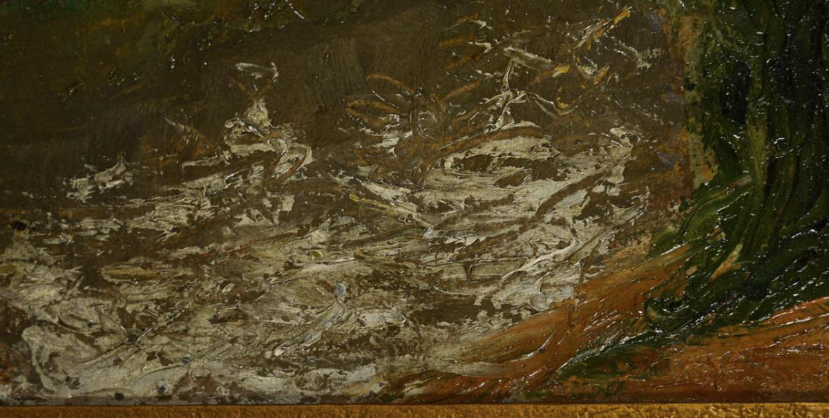 Oil/plywood. Faintly signed lower right, inscribed/titled verso.