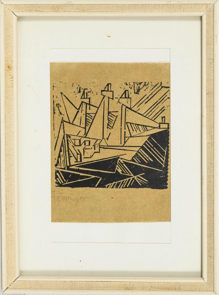 Woodcut on browned paper. "Feininger" and dated in pencil lower left. 1938.