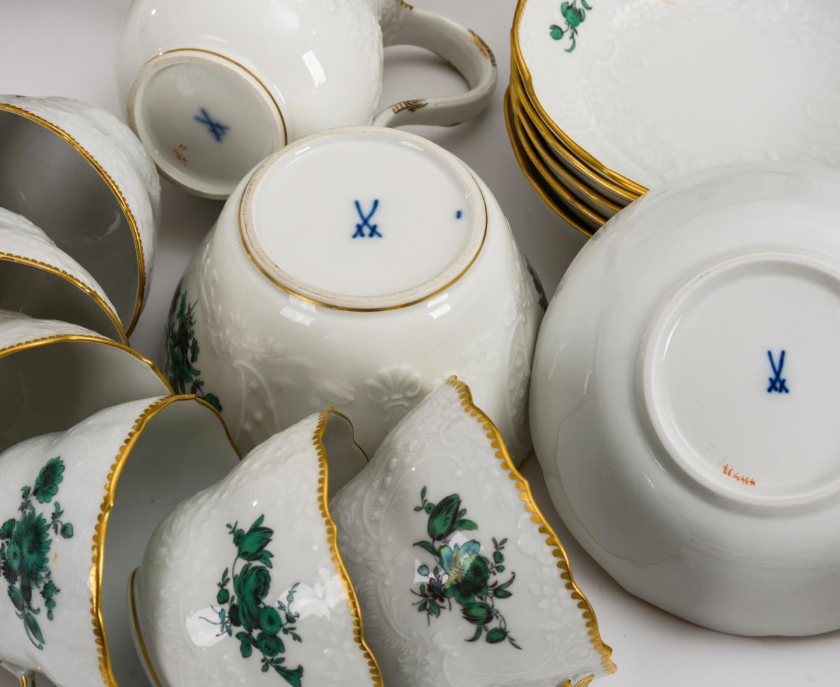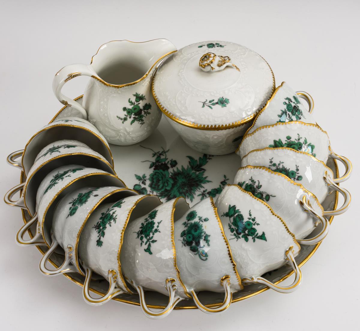 Kaffeeservice mit kupfergrüner Blumenmalerei