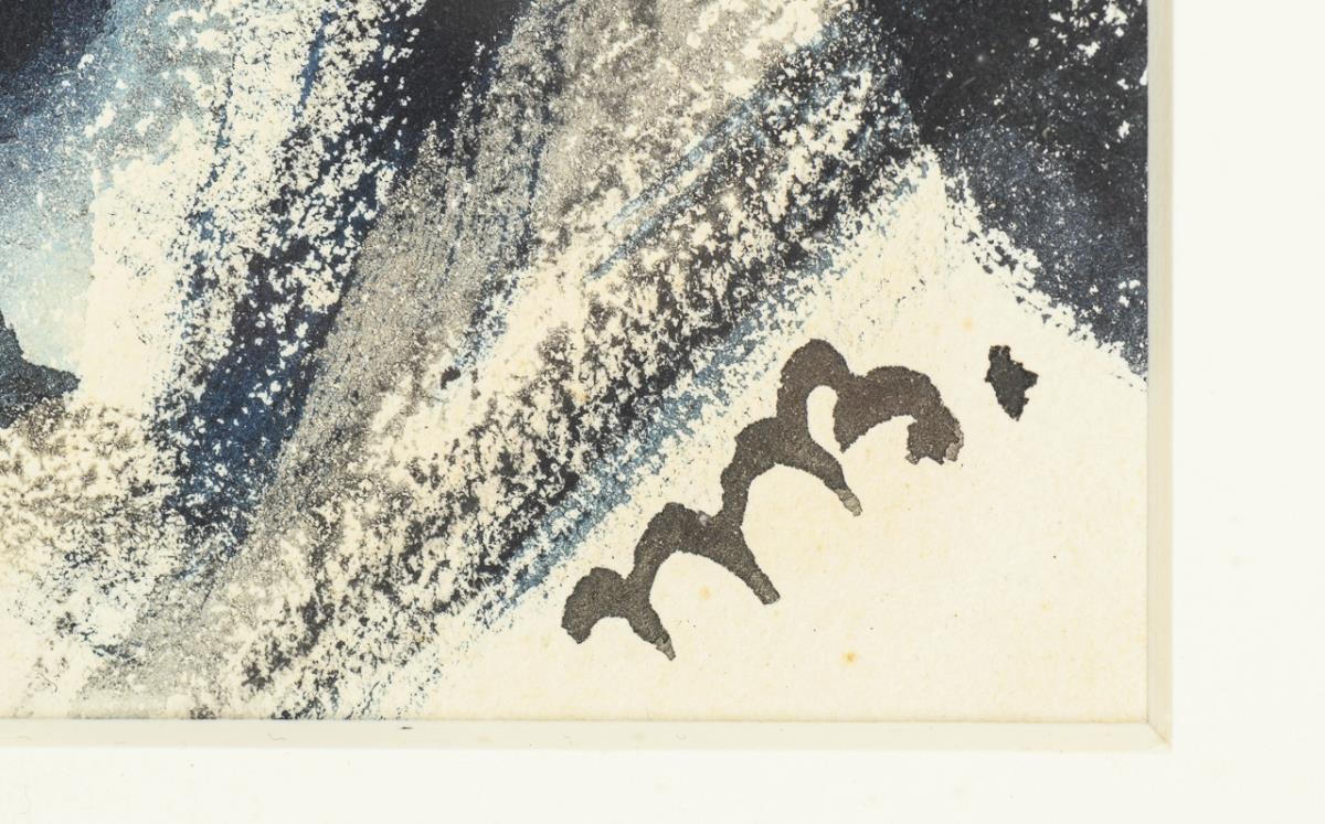 35.5 x 27 cm. Framed & behind glass : 51 x 42 cm (black lacquer frame).