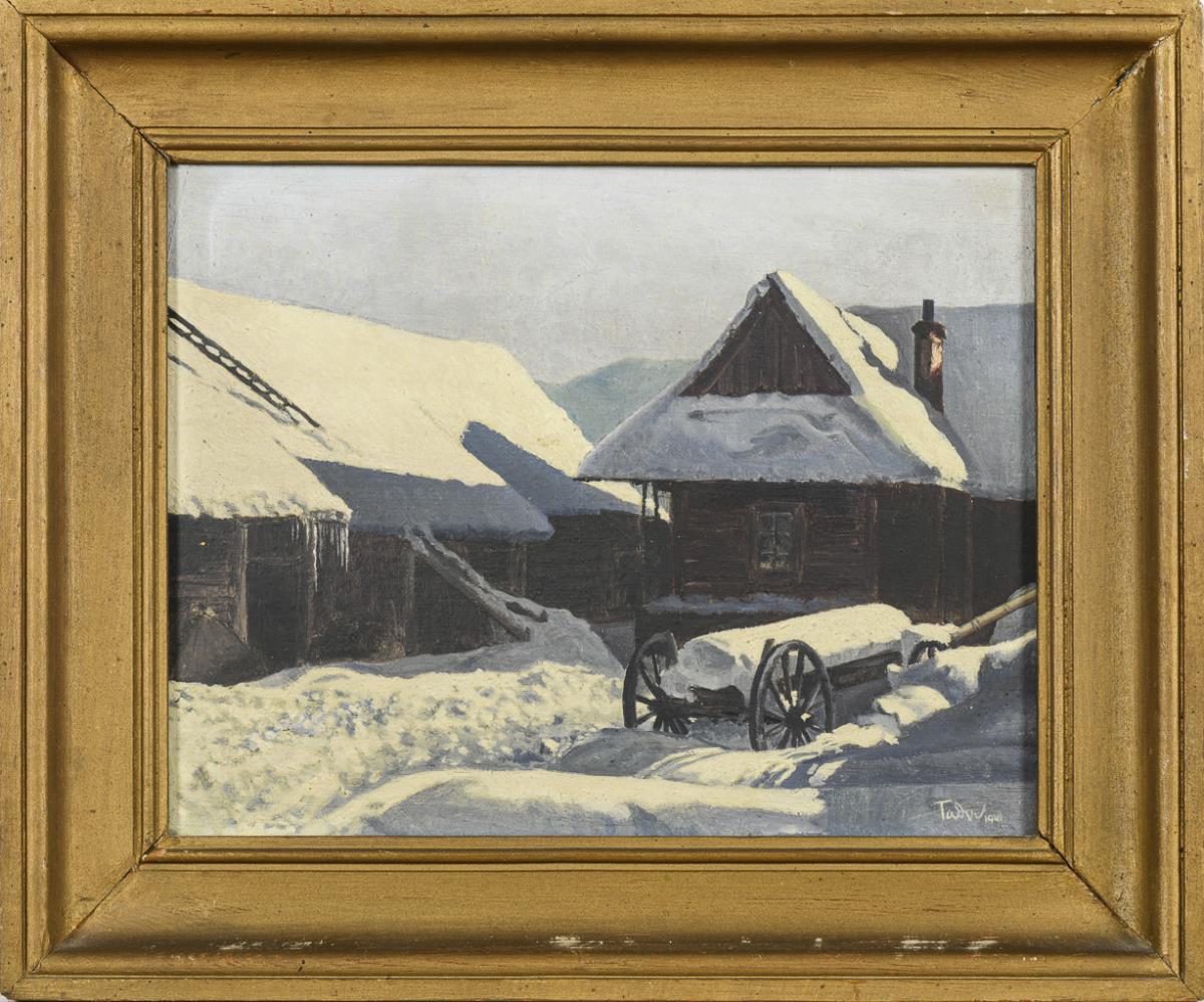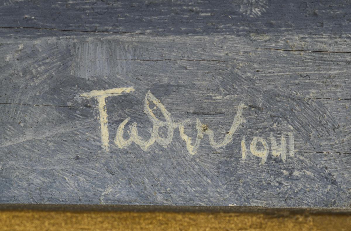 Oil/plywood. Indistinctly signed lower right. 1941.