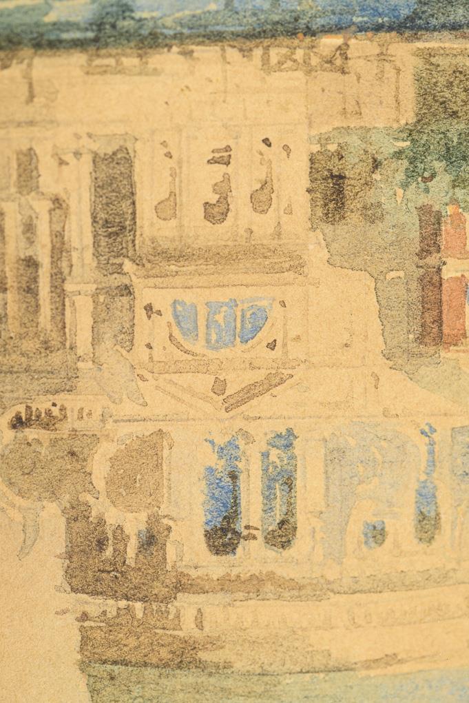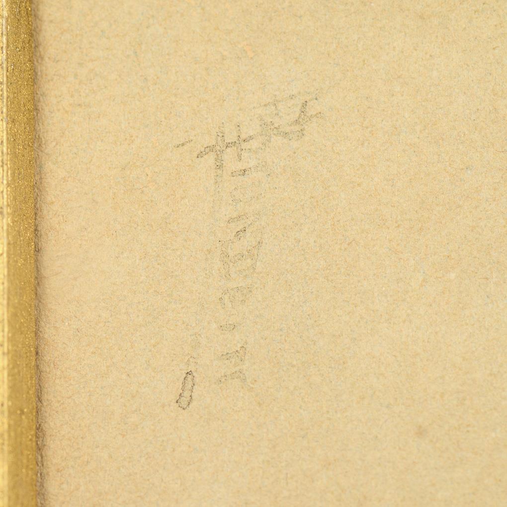 Passepartout cut-out 24 x 15 cm and 29.5 x 18 cm. Framed : 43 x 33 cm and 49 x 35.5 cm (each gold frame).