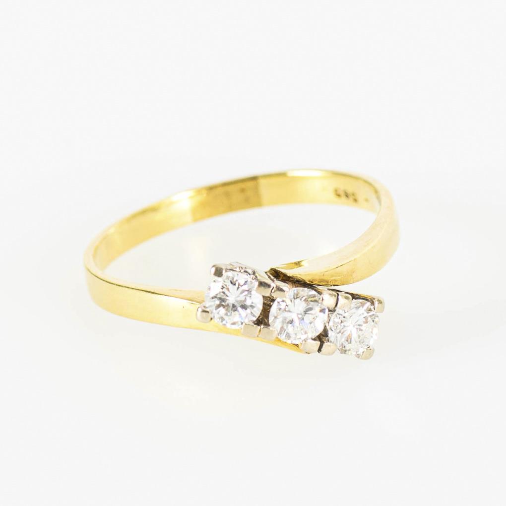 Yellow gold/white gold 585, stamped. Brilliant-cut diamonds totaling ca. 0.60 ct (G-H/vs-si). Ring size 61. 3.41 g.