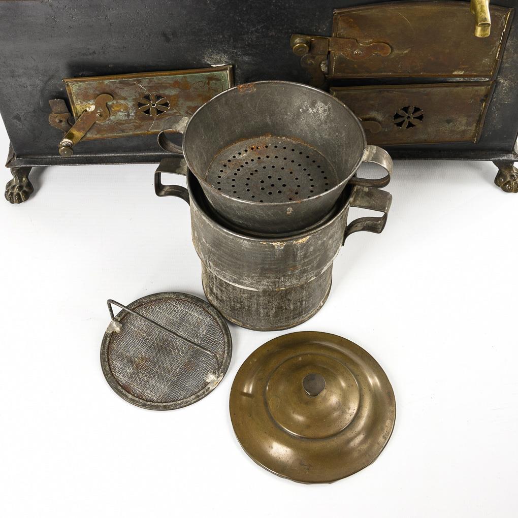 Old tin stove with original pots.