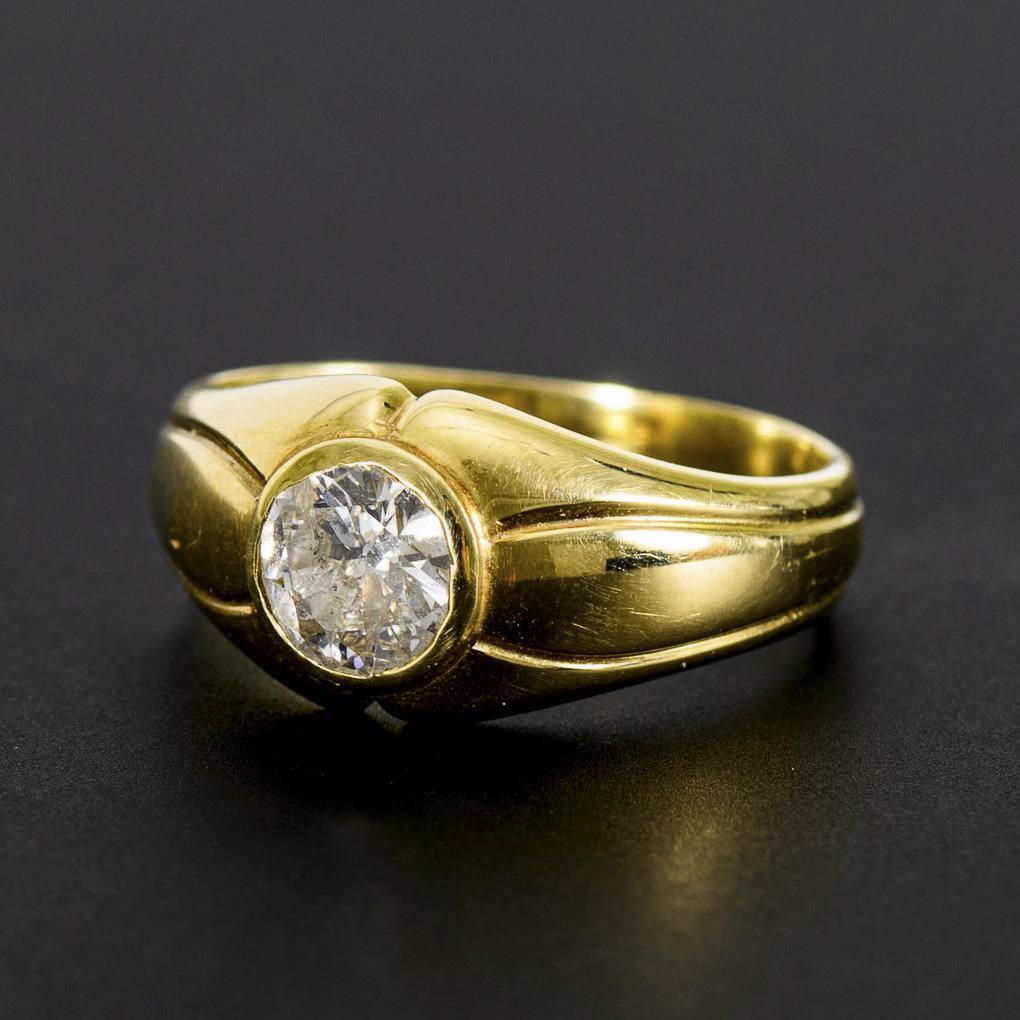 Yellow gold 585, stamped. Brilliant approx. 1.03 ct. (F-G, P1), ring size 60.5. 6.84 g.