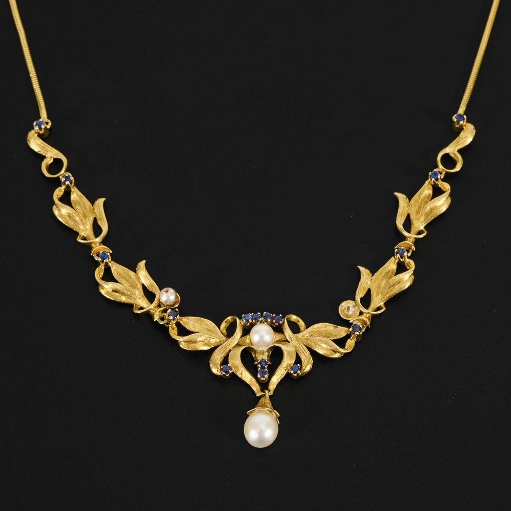 Collier with cultured pearls and sapphires.