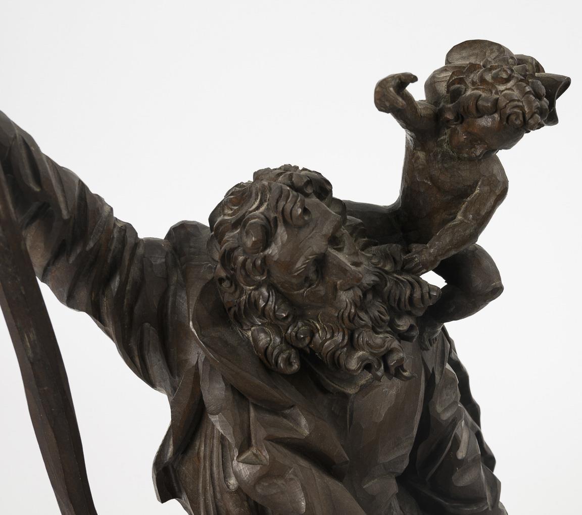 Softwood, stained dark. 2nd half 20th century Monogrammed "HD" on the console with the addition Oberammergau. H 52 cm (without rod and base). Total height 76 cm.