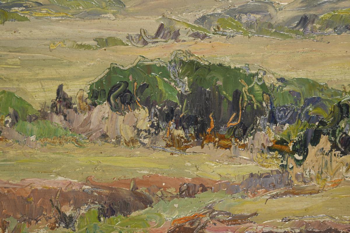 Oil/plywood. Signed lower left, signed/titled on verso.