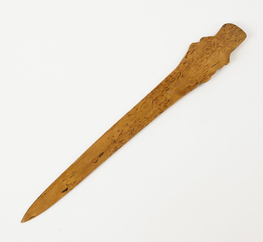 Karelian curly birch, flat on one side. L 38.5 cm.